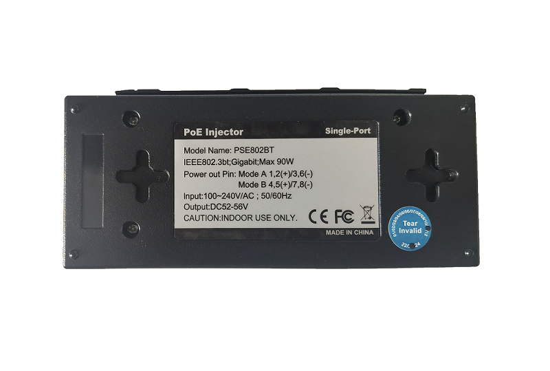 PSE802BT单端口千兆2.5以太网电源设备适合室内使用。可在100vac~240VAC输入电压下正常工作。电源通过超5级电缆与网络终端设备连接。它有一个以太网数据端口和一个经过数据和功率合成的输出端口。该设备可为单向以太网设备提供符合ieee802.3af/at/bt国际标准的Poe供电应用,如广告机、小型基站、交换机、无线AP、工业网络终端、网络摄像头、,满足在远端无法供电或使用以太网网络电缆供电的地方提供高效工程解决方案的要求,以提高系统可靠性和简化设备安装。